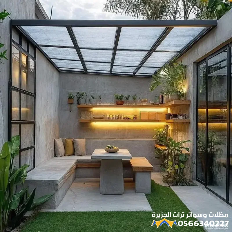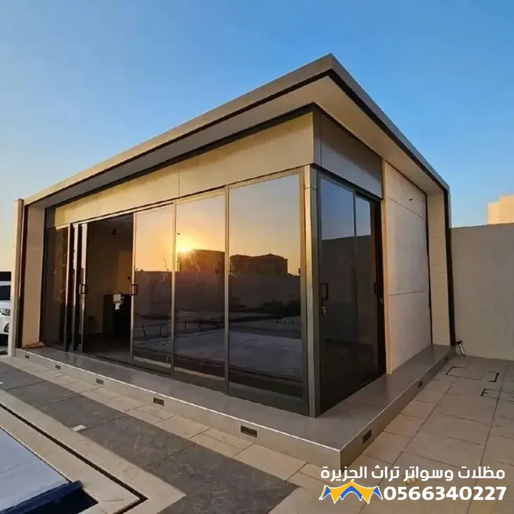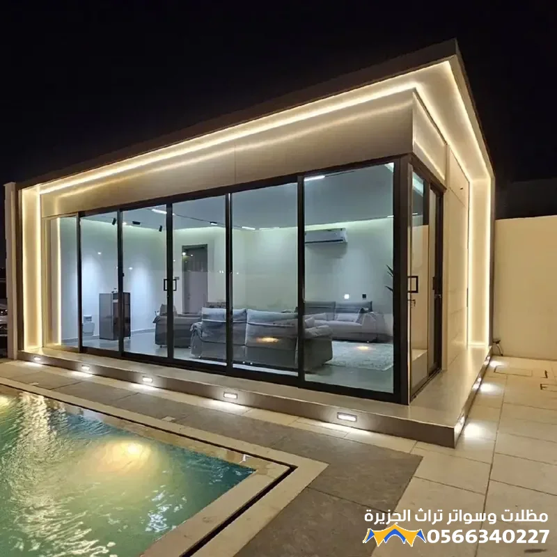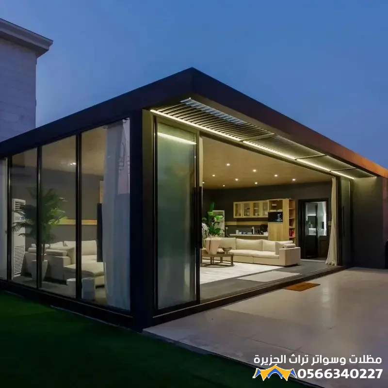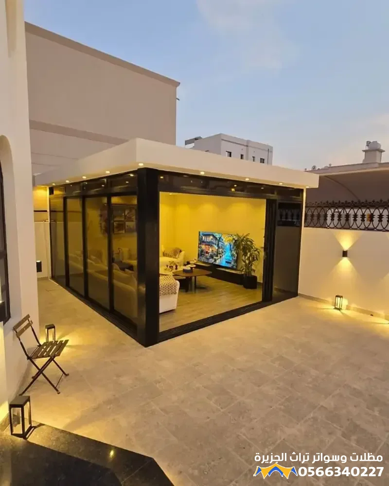 - تعدد الاستخدامات: يمكن تصميم الملحق ليكون مجلساً (غرفة معيشة أو استقبال)، مكتباً منزلياً هادئاً، أو حتى صالة رياضية، مما يجعله إضافة وظيفية قيمة.
