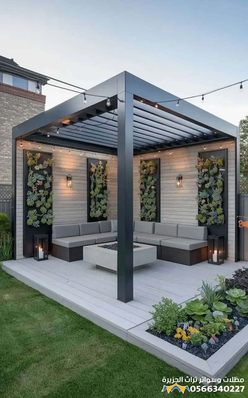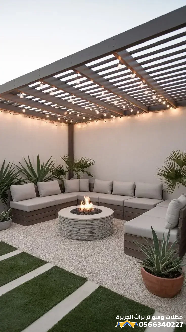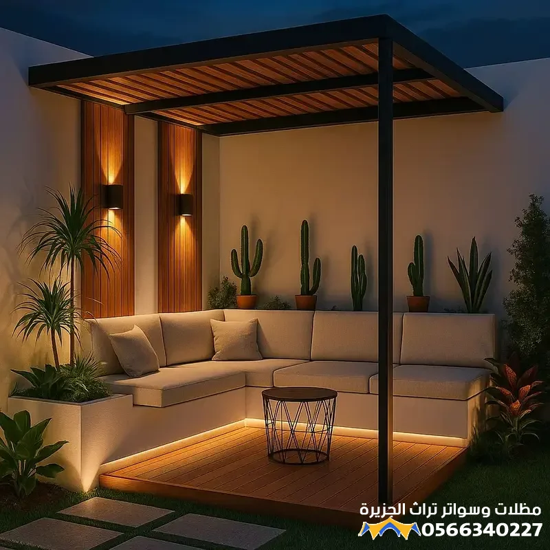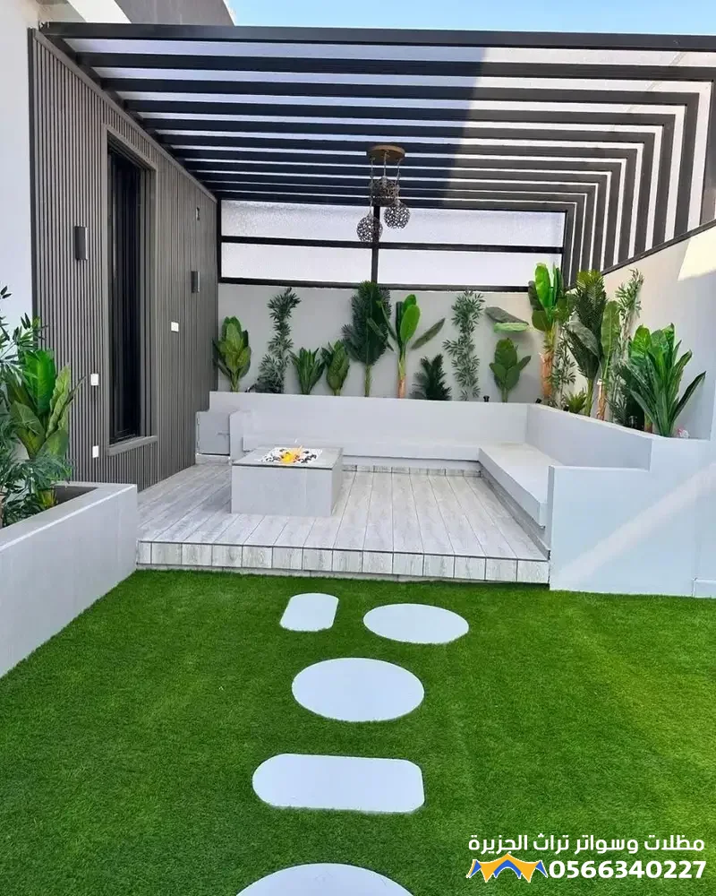 - الديكورات الصلبة: تشمل إضافة أرضيات خشبية معالجة (برجولات)، المظلات والجلسات الخارجية المريحة، والشلالات أو النوافير الصغيرة التي تضفي على المكان صوتاً منعشاً وحركة جمالية.