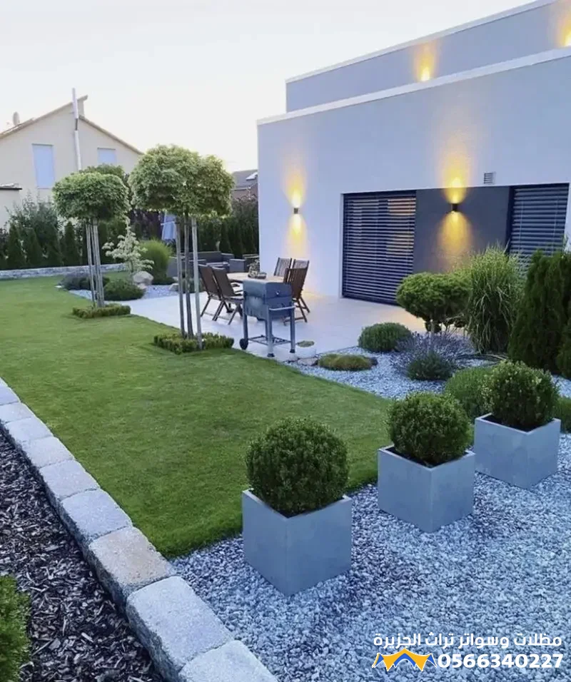 - الإضاءة الجمالية: استخدام إضاءة خارجية هادئة وموزعة بعناية يخلق أجواءً ساحرة ومريحة للاستخدام المسائي، مع تسليط الضوء على العناصر الجمالية في الحديقة.