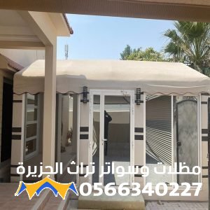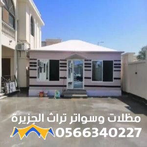 التصميم والمواد: يغلب عليها الطابع المودرن في الهيكل مع الاحتفاظ باللمسة التراثية في الديكور. يتم الاعتماد على هياكل معدنية (تيوبات) قوية، وأقمشة عازلة ذات جودة عالية (مثل الألماني أو التركي) توفر عزلاً كاملاً ضد حرارة جدة الشديدة ومياه الأمطار.