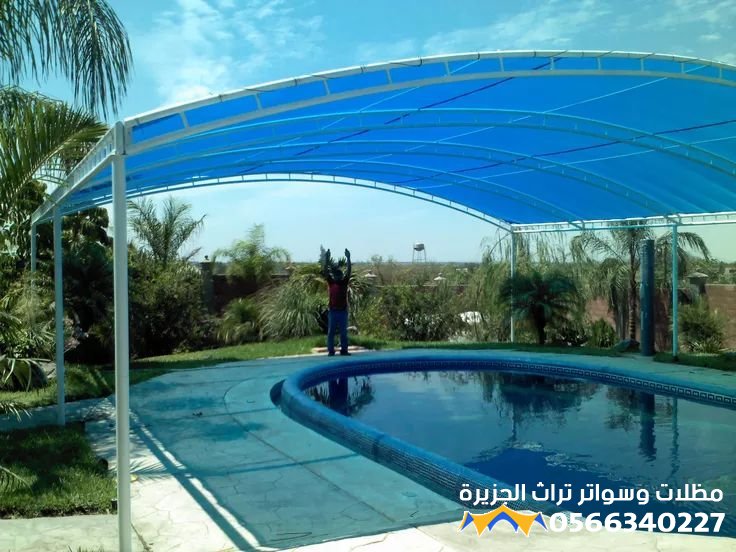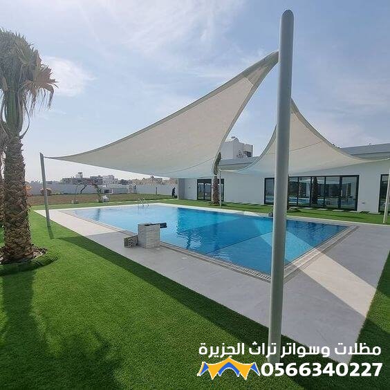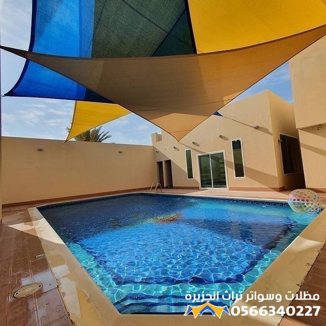 تُستخدم مظلات المسابح لتوفير الظل وحماية المياه من الأتربة والحشرات، مما يقلل من الحاجة إلى التنظيف المتكرر ويُطيل عمر المسبح. كما تضمن السواتر المحيطة بالمسابح الخصوصية التامة لمرتاديها.