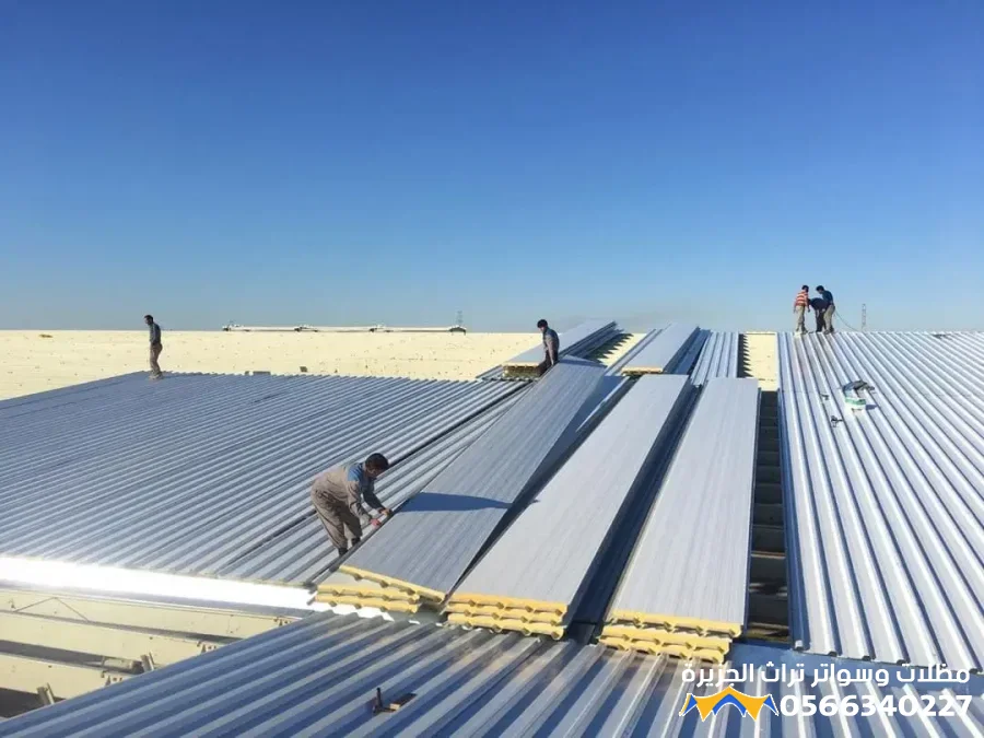 - رفع وتركيب الألواح: تُرفع الألواح بعناية وتُثبت بشكل محكم باستخدام مسامير التثبيت الذاتيةأو براغي خاصة ذات حشوات مطاطيةلمنع التسرب.