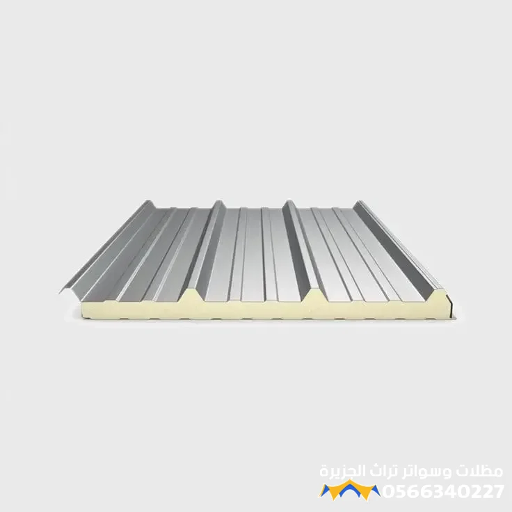- الطبقتان الخارجيتان: وهما أغشية صلبة ومرنة في آن واحد، غالبًا ما تكون من صفائح الفولاذ المجلفن أو الألومنيوم المعالج والمطلي لتحمل العوامل الجوية والصدأ. هذه الألواح توفر القوة الهيكلية والحماية الخارجية.