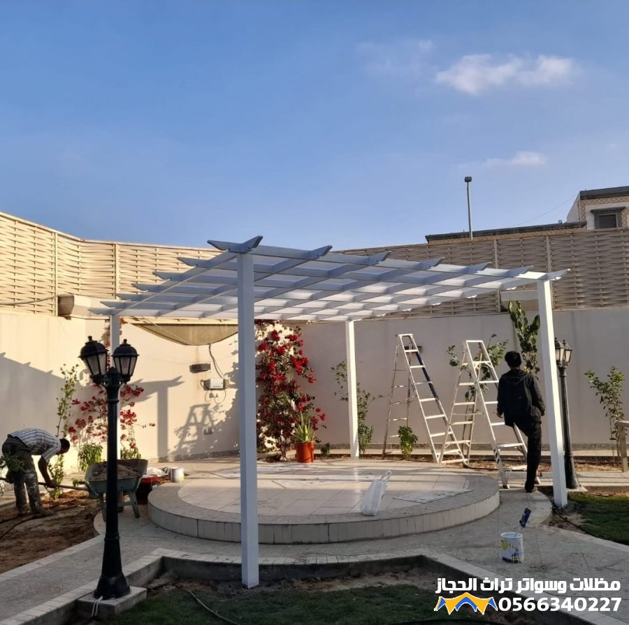 لتحويلها إلى ملاذ شتوي، يمكن تزويد البرجولة بستائر جانبية شفافة من المشمع أو الزجاج المقاوم للرياح والأمطار، مما يوفر الحماية الكاملة دون حجب الإطلالة.